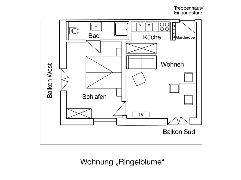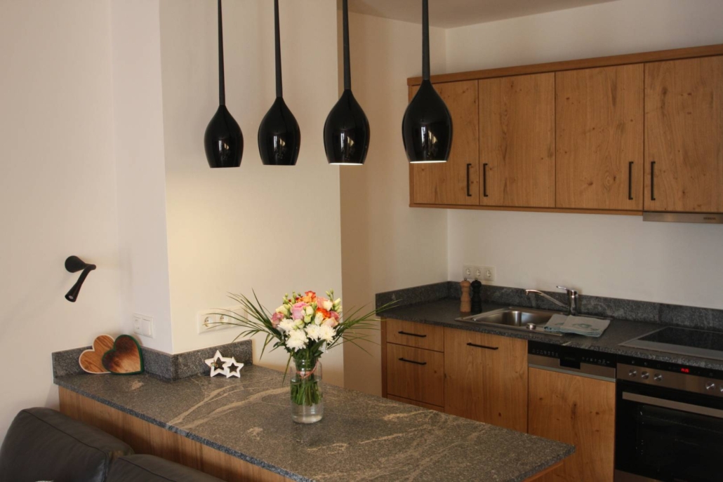 Alle Wohnungen im Ferlbauer sind großzügig ausgestattet: Küchenzeile mit Geschirrspüler, ausreichend Geschirr, Microwelle, 4 Platten Cerankochfeld, Kühlschrank, große Arbeitsfläche, ausreichend Schränke und Abstellmöglichkeiten. Bettwäsche und Handtücher werden gestellt.